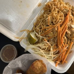 Thai 55 is one of my go to spots to order from. I always get the chicken pad Thai, and today I also got the chicken egg rolls. The chicken egg rolls were a lot heavier than I expected, deep fried and stuffed with chicken and veggies. The chicken pad Thai is always a MASSIVE portion, plenty for 2-3 meals. I would definitely order again!